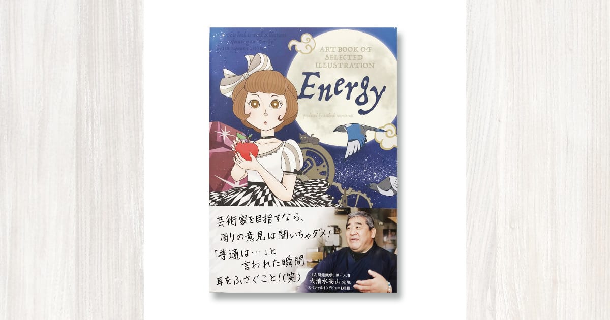 活躍中の作家約100名の作品をテーマごとにまとめたアートブック作品集、ART BOOK OF SELECTED ILLUSTRATION Energyに見開きで2ページ掲載させていただきました。